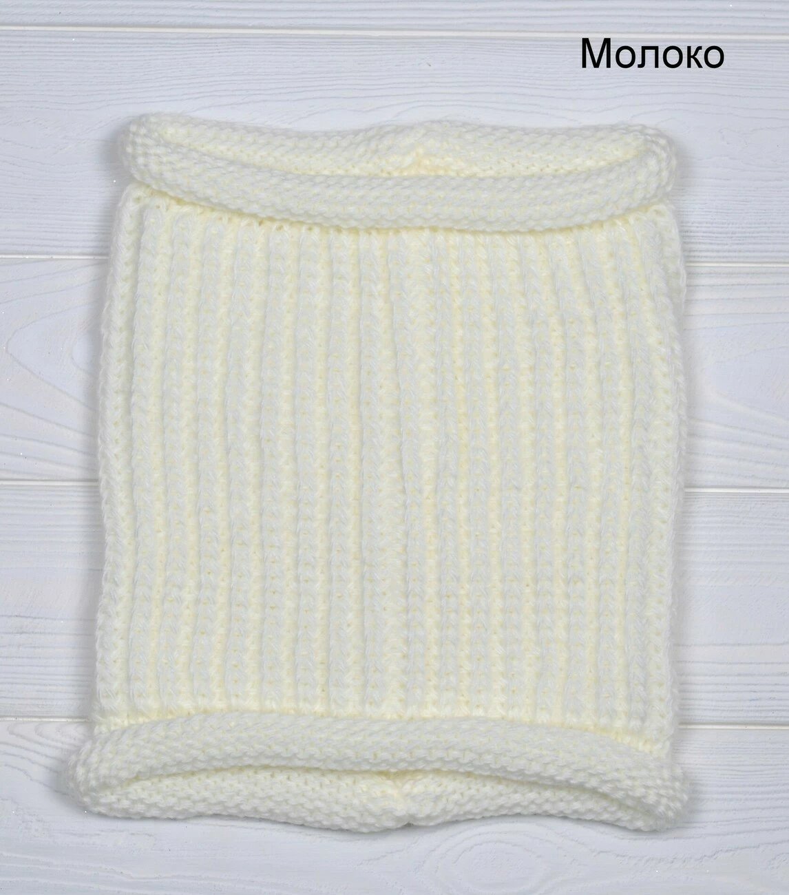 Детский вязаный хомут из пушистой ворсистой пряжи.