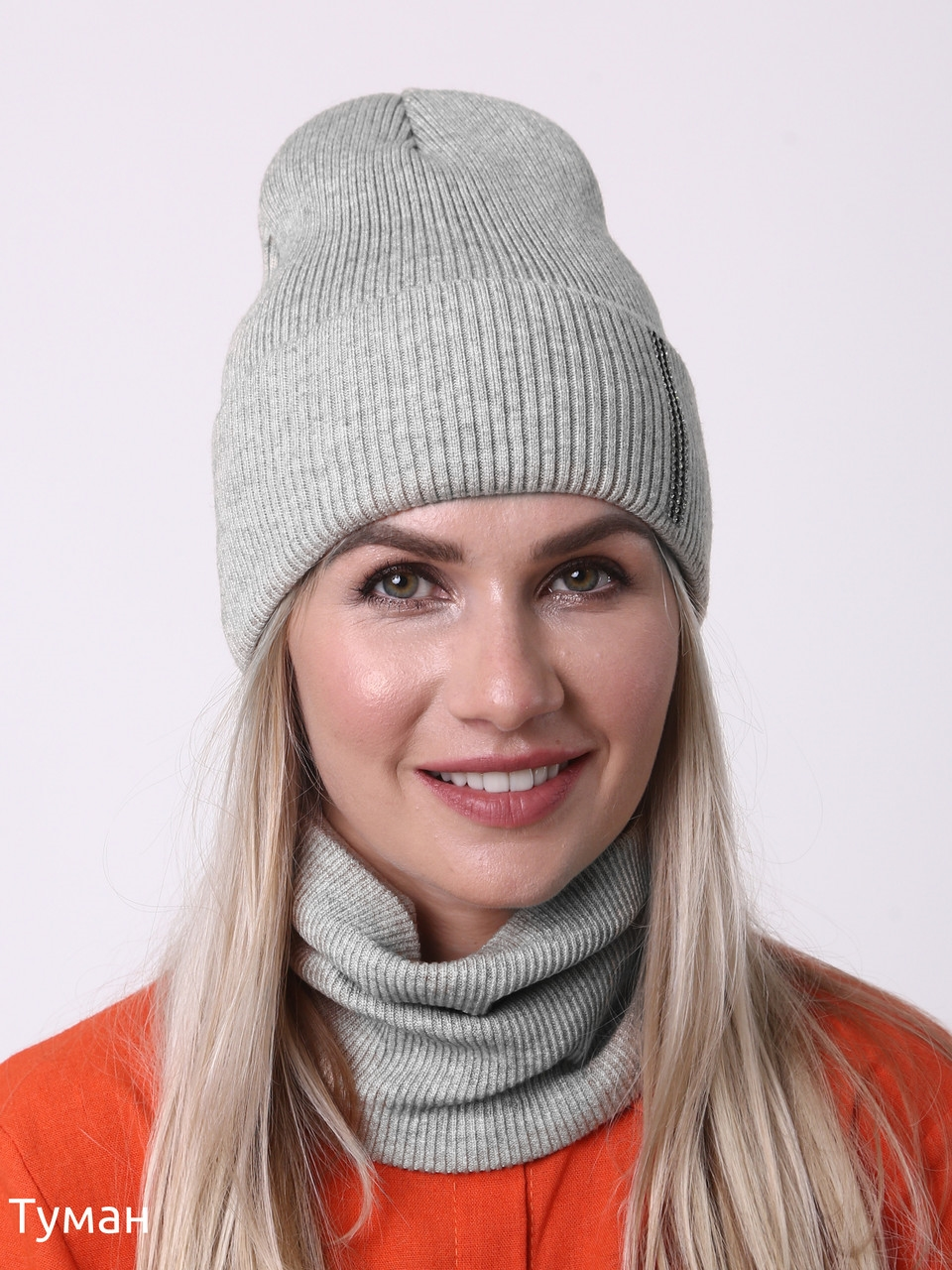 Шапка с отворотом выполнена мягкой кашемировой пряжи.