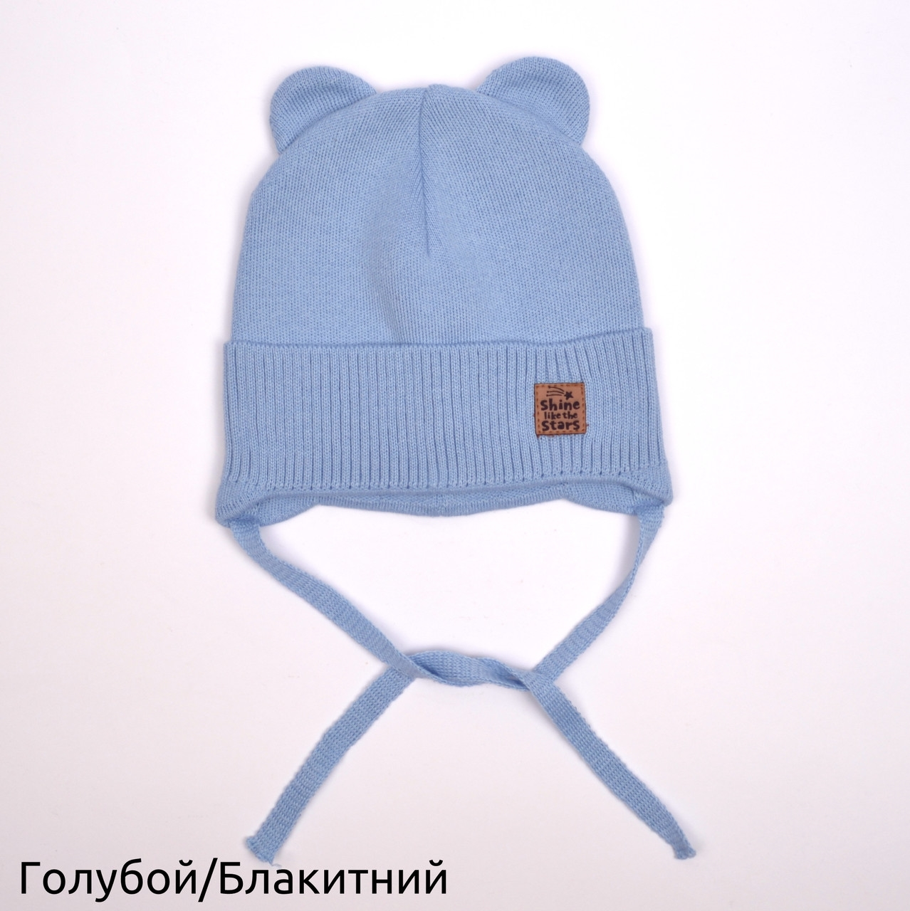 Стильная шапочка с ушками, на завязках. Тонкая вязка в 1 слой, с небольшим отворотом. Подходит малышам ориентировочно от 6 мес до 3 лет.